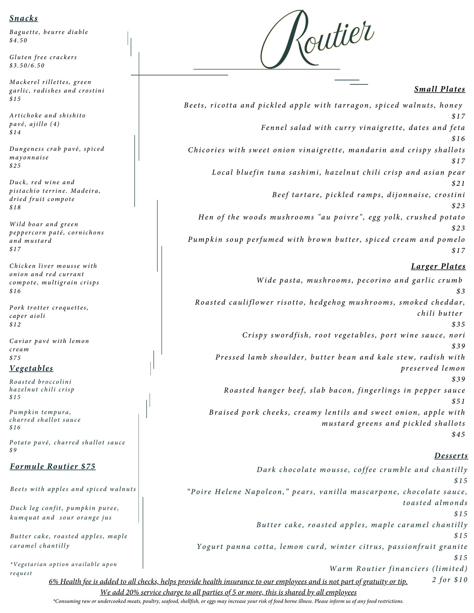 To book parties over 6 guests or private events please email reseservationsroutier@gmail.com